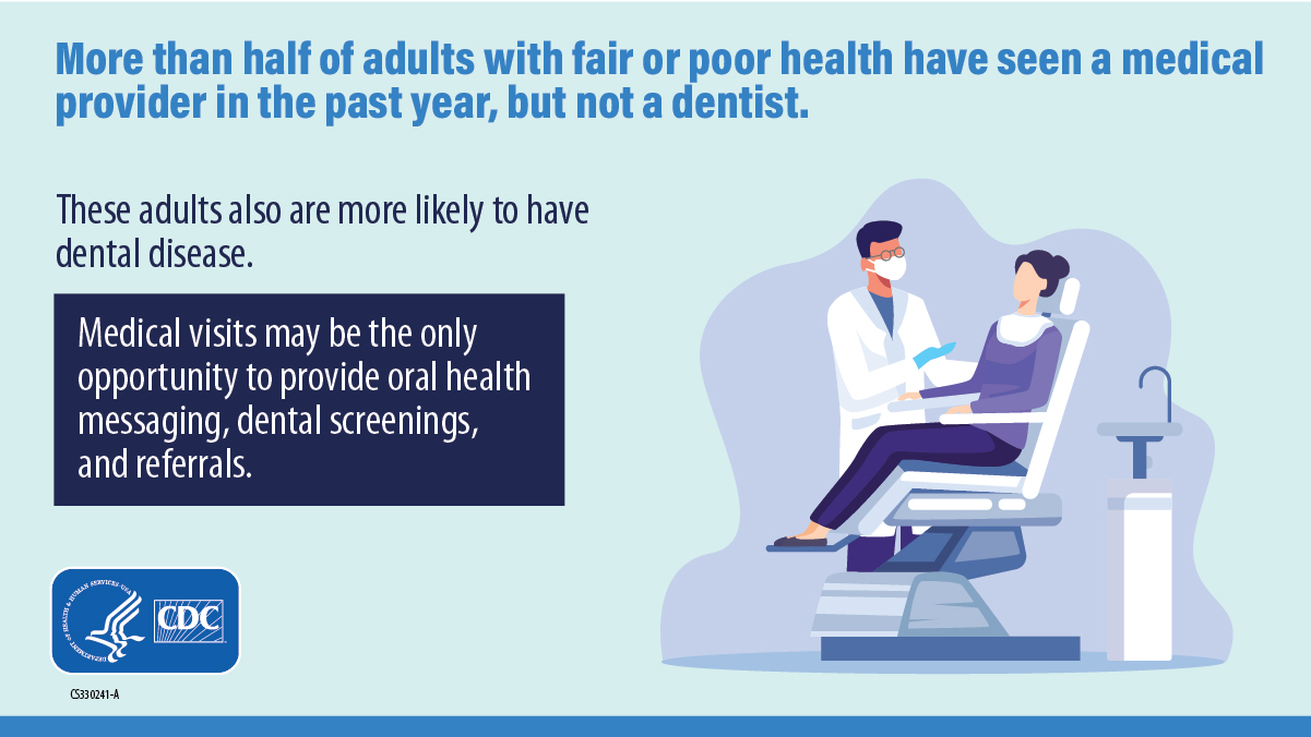 More than half of adults with fair or poor health have seen a medical provider in the past year, but not a dentist.
