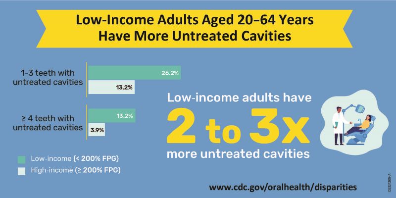 Low-Income Adults Aged 20-64 Years Have More Untreated Cavities.