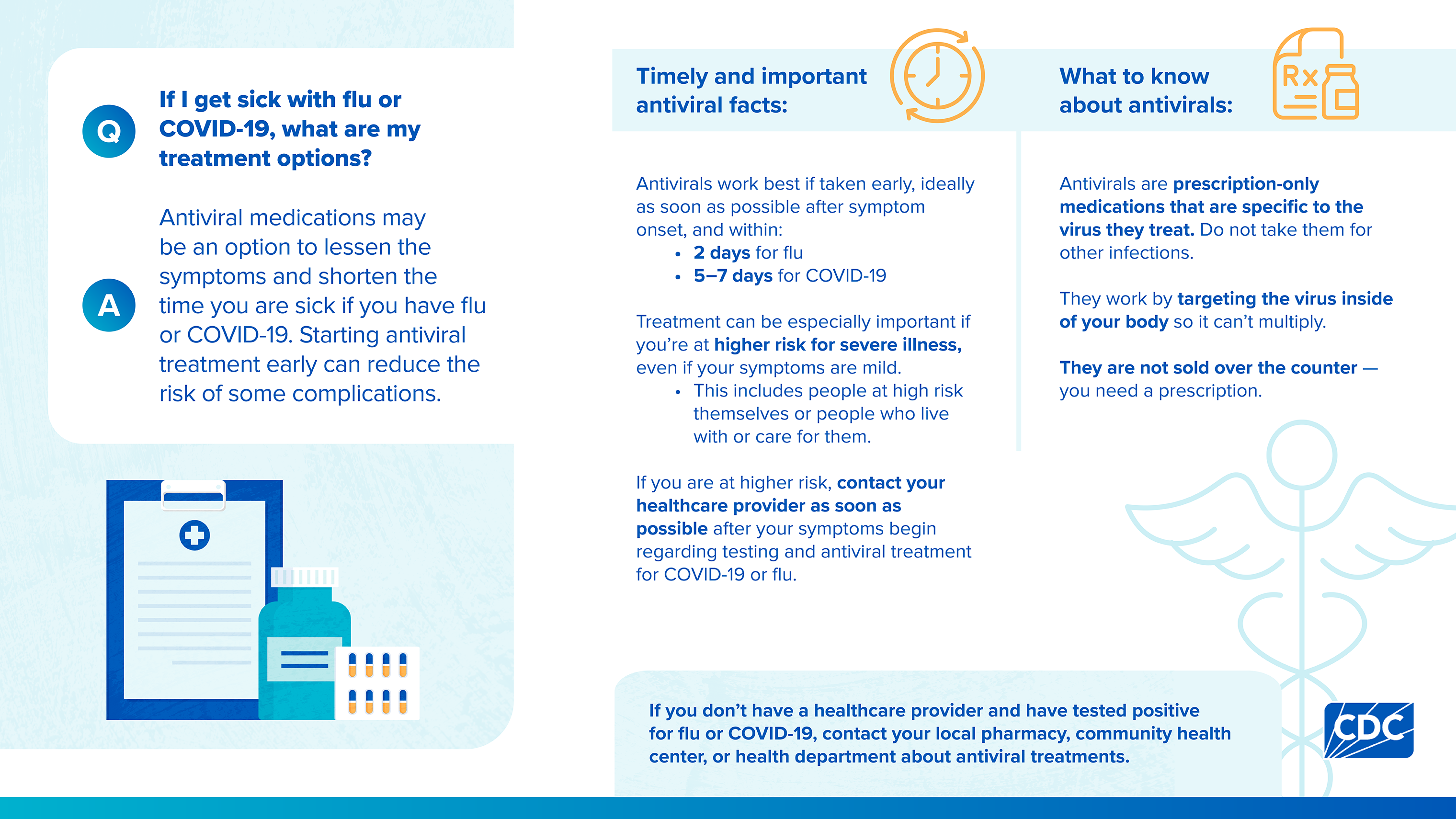 - Talk with friends and family about how antiviral treatment could help reduce their chances of being hospitalized or dying from respiratory viruses like COVID-19 and flu.