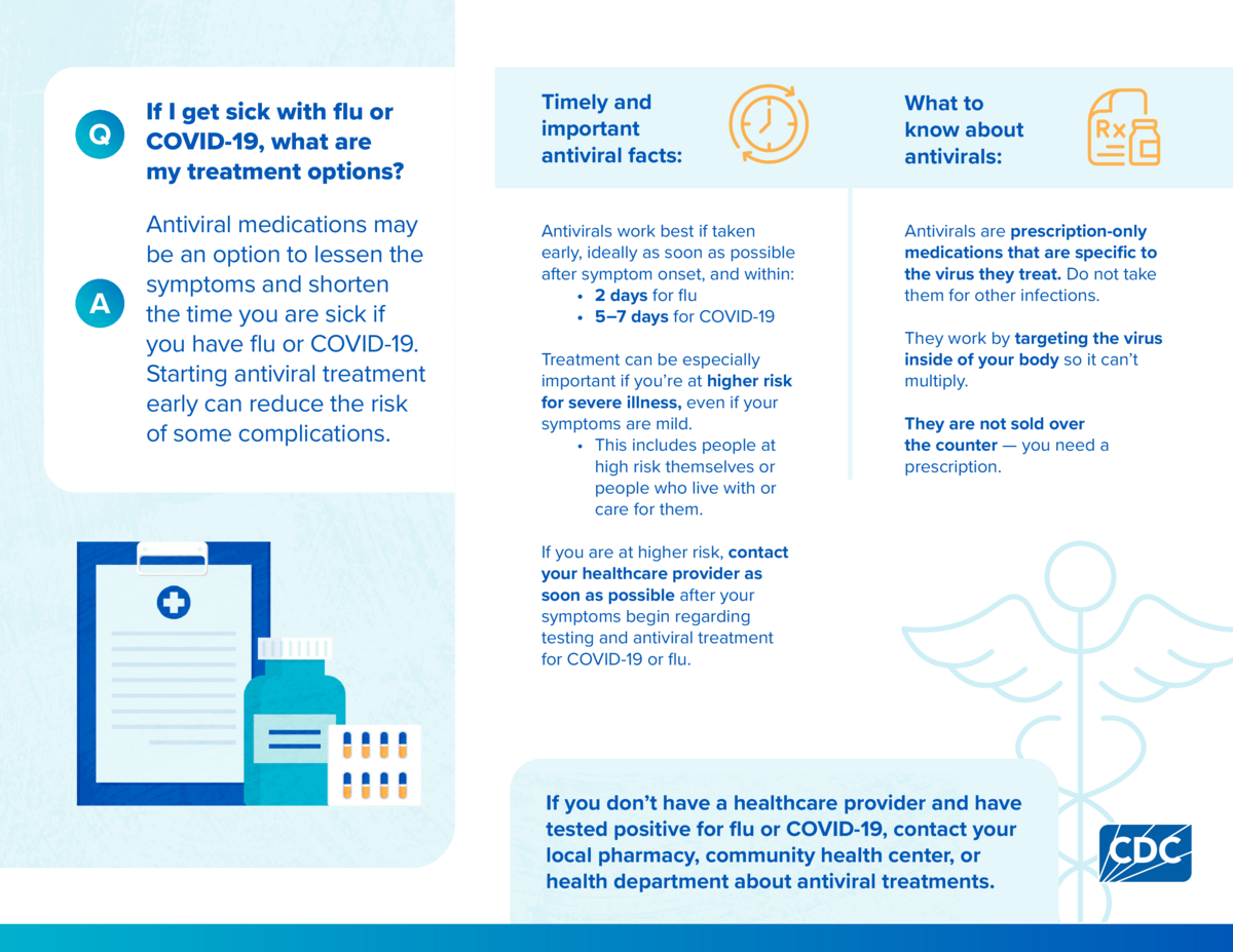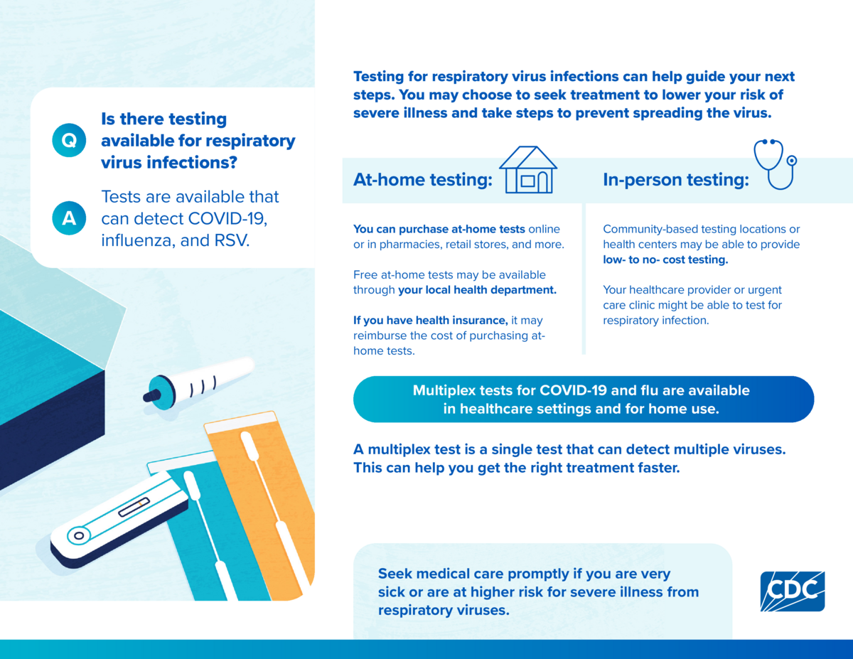 These printable handouts can help inform people about the available testing and treatment options for respiratory viruses like flu, COVID-19, and RSV. We encourage you to print and share these resources with the communities your serve.