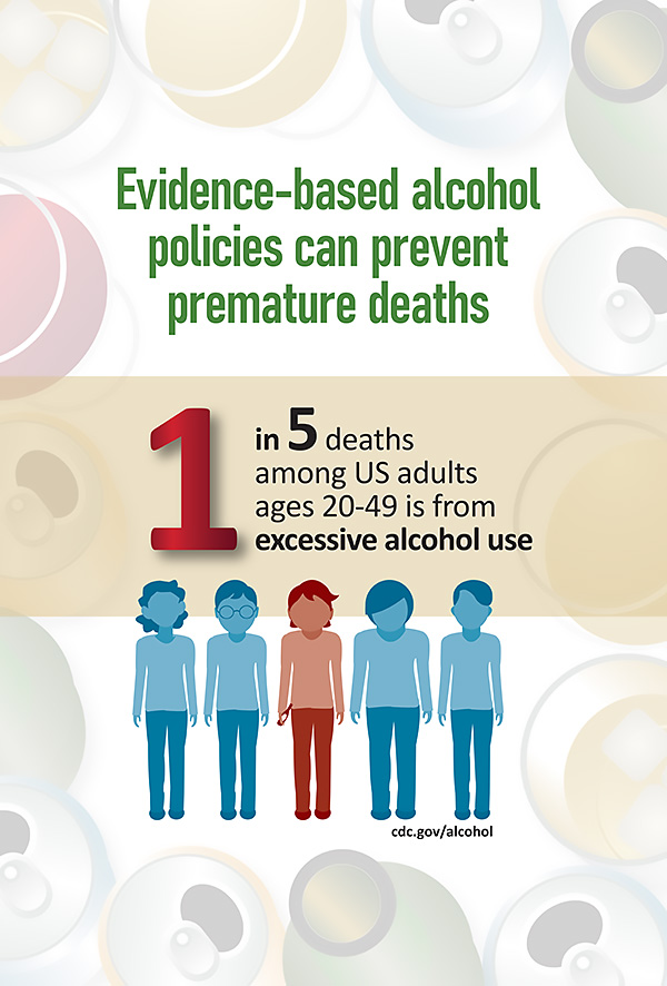 Excessive alcohol use leads to 1 in 5 deaths among U.S. adults 20 to 49.