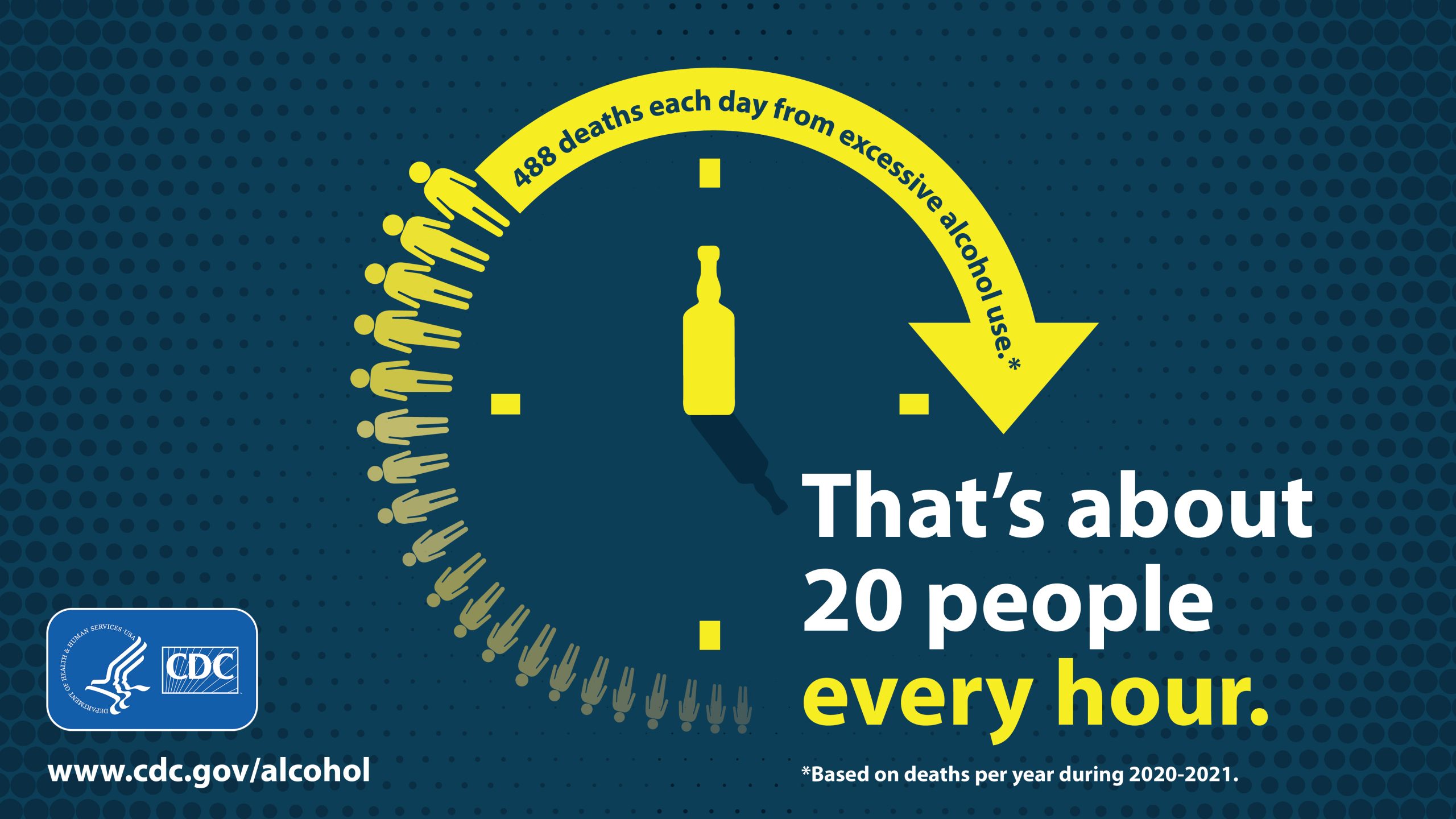 About 20 people die every hour from excessive alcohol use.