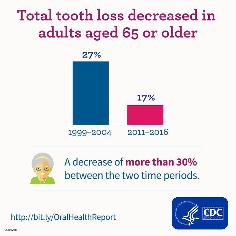Total tooth loss decreased in adults aged 65 or older.