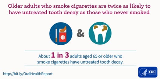 About 1 in 3 adults aged 65 or older who smoke cigarettes have untreated tooth decay.