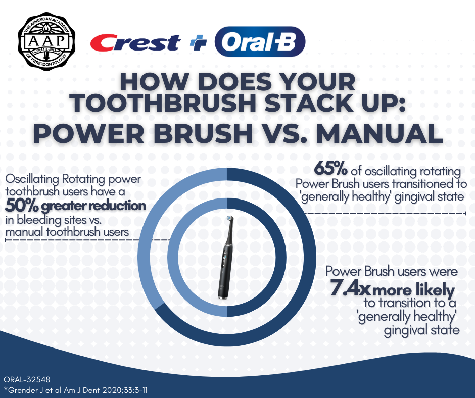 Crest + Oral-B’s Transformational Gum Health Electric Rechargeable System can transform patient gum health starting day 1. In a clinical study, 100% of patients moved to a state of healthy gums after just 12 weeks of use.